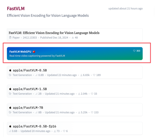 除此之外,苹果同样准备了一个叫做FastVLM-Web GPU的项目,它可以通过摄像头实时分析视频流。你可以在下面这个位置找到它,点击即可使用: