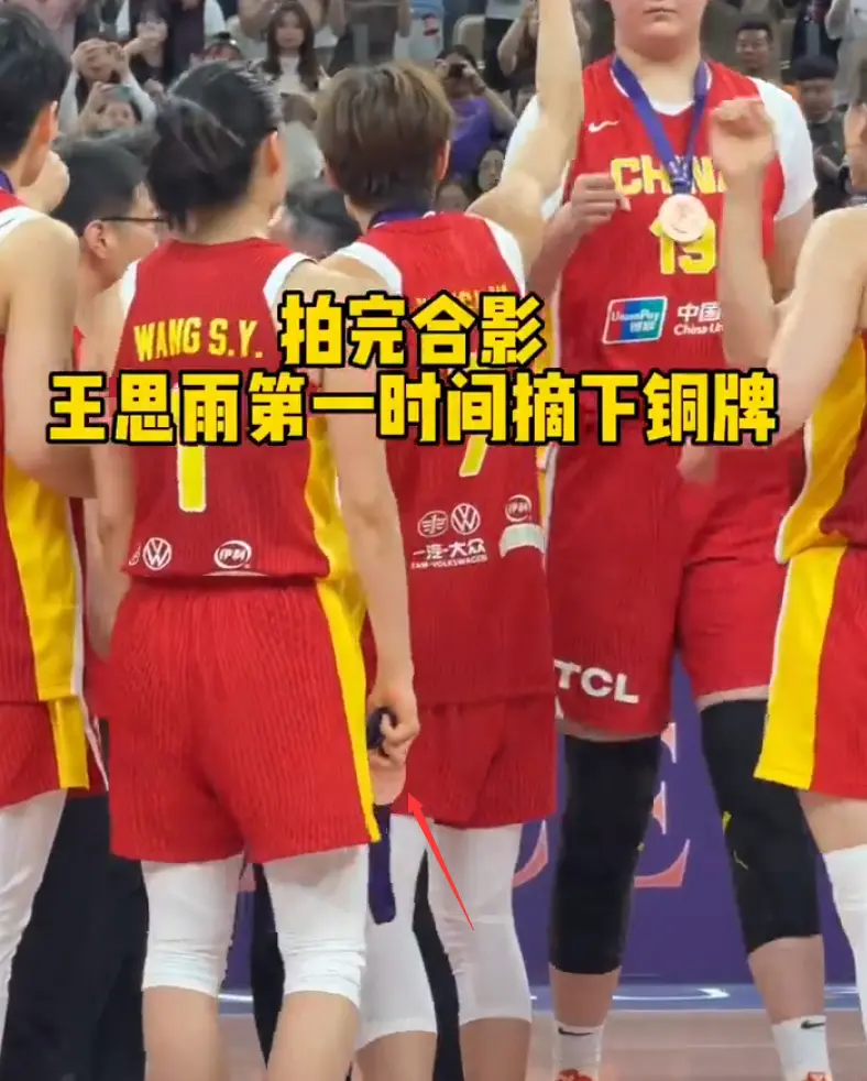 王思雨今夏的亚洲杯成为热点人物,因为在35分大胜韩国拿到铜牌后王思雨仰天长叹+痛哭流涕,大合影后王思雨立马摘下铜牌,王思雨对本次亚洲杯之旅非常不满意。