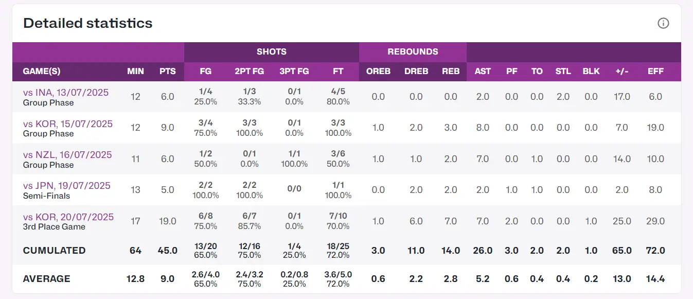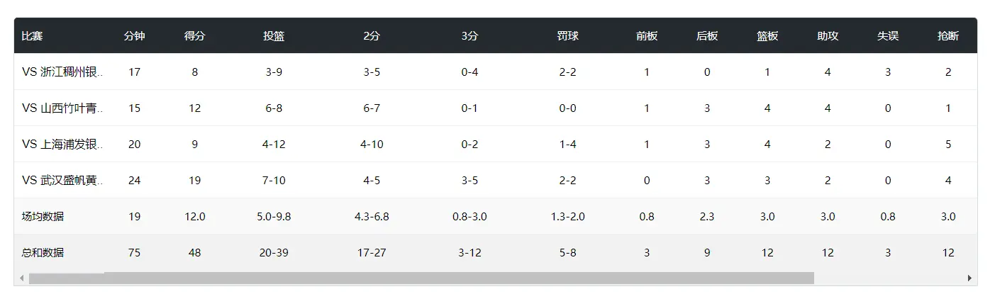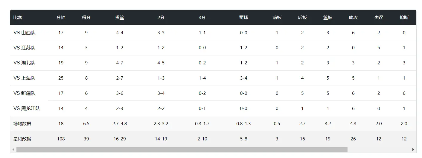 为什么说王思雨是觉醒呢?因为此役之前只有一场双双,场均19分钟,拿12分3助攻3篮板3抢断,命中率51.2%,三分命中率25%很明显是划水的状态。