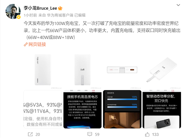 华为终端BG CTO李小龙介绍杨方策略,该产品又一次打破了充电宝的能量密度和功率密度世界纪录。